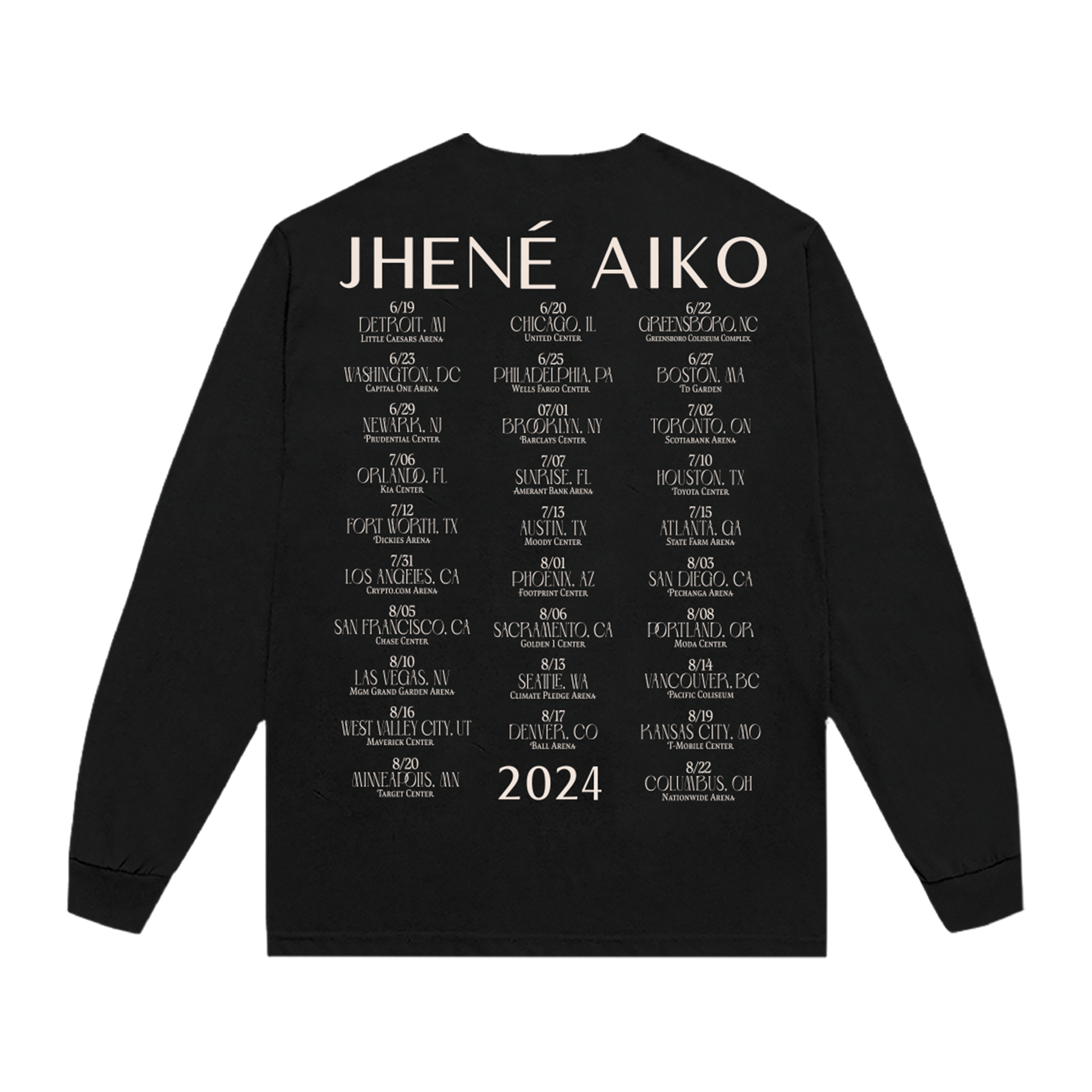 Black long sleeve tee featuring Jhene Aiko on the front and The Magic Hour Tour logo on the sleeve.